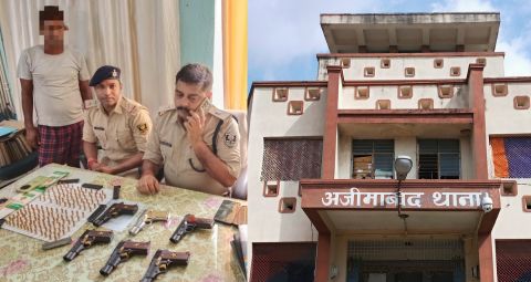 इसकी जानकारी पुलिस अधीक्षक राज द्वारा गुरुवार को प्रेस कांफ्रेंस के दौरान दी गई। गिरफ्तार अजीमाबाद थाना क्षेत्र के कमरिया गांव निवासी काशी महतो उर्फ काशीनाथ सिंह का पुत्र अमन उर्फ राजकुमार उर्फ राज कपूर है। उन्होंने बताया कि एसटीएफ की टीम एवं अजीमाबाद थाना पुलिस को गुप्त सूचना मिली थी कि कमरिया गांव में हथियार और कारतूस की बड़े पैमाने पर खरीद-बिक्री की जाने वाली है। इसके बाद एसटीएफ एवं पुलिस की संयुक्त टीम ने बुधवार की शाम कमरिया गांव में निवासी काशी महतो के घर दबिश दी। जहां से भारी मात्रा में हथियार और कारतूस बरामद हुआ। पुलिस ने मौके से काशी महतो के पुत्र को धर दबोचा।