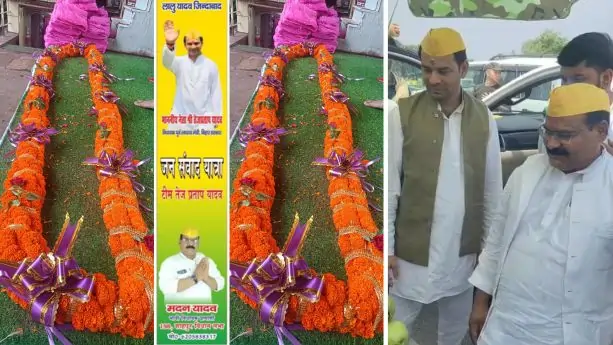 आरा,शाहपुर। बिहार के पूर्व मुख्यमंत्री लालू प्रसाद यादव के बड़े पुत्र तेज प्रताप यादव का शाहपुर विधान सभा क्षेत्र में जोरदार स्वागत करने की तैयारी की जा रही है। जन संवाद यात्रा पर निकले तेज प्रताप यादव के लिए शाहपुर विधानसभा क्षेत्र के बिहिया नगर पंचायत में स्वागत समारोह आयोजित किया गया है। हसनपुर विधायक सह बिहार सरकार में स्वास्थ्य मंत्री रह चुके तेजप्रताप यादव को 21 किलो की एक बड़ी फूल माला पहनाई जाएगी।