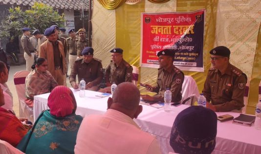 आरा। पुलिस अधीक्षक राज द्वारा मंगलवार को जगदीशपुर थाना परिसर में जनता दरबार सह भ्रमण कार्यक्रम का आयोजन किया गया। इस दौरान उन्होंने आम जनता से जुड़े मामले को सुनकर उनके त्वरित समाधान करने के लिए संबंधित पुलिस पदाधिकारी को आवश्यक दिशा निर्देश दिया। एसपी के जनता दरबार सह भ्रमण कार्यक्रम में ज्यादातर मामले भूमि विवाद, घरेलू विवाद, दहेज उत्पीड़न आदि से संबंधित आए। कुछ मामले केसों से भी संबंधित भी आए।